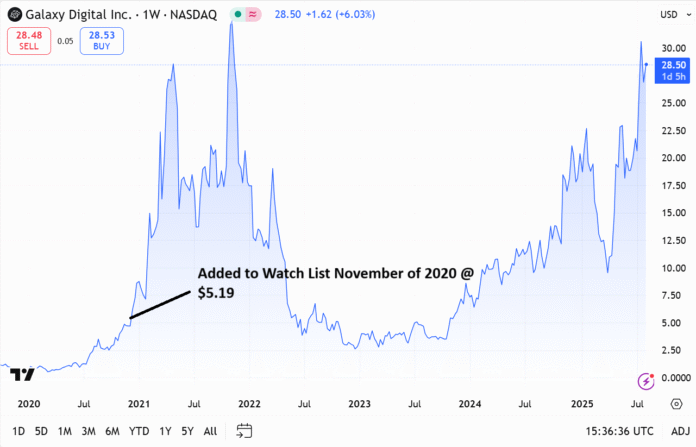 Galaxy Digital Inc. (GLXY) Gains 454% After Adding to Watch List.