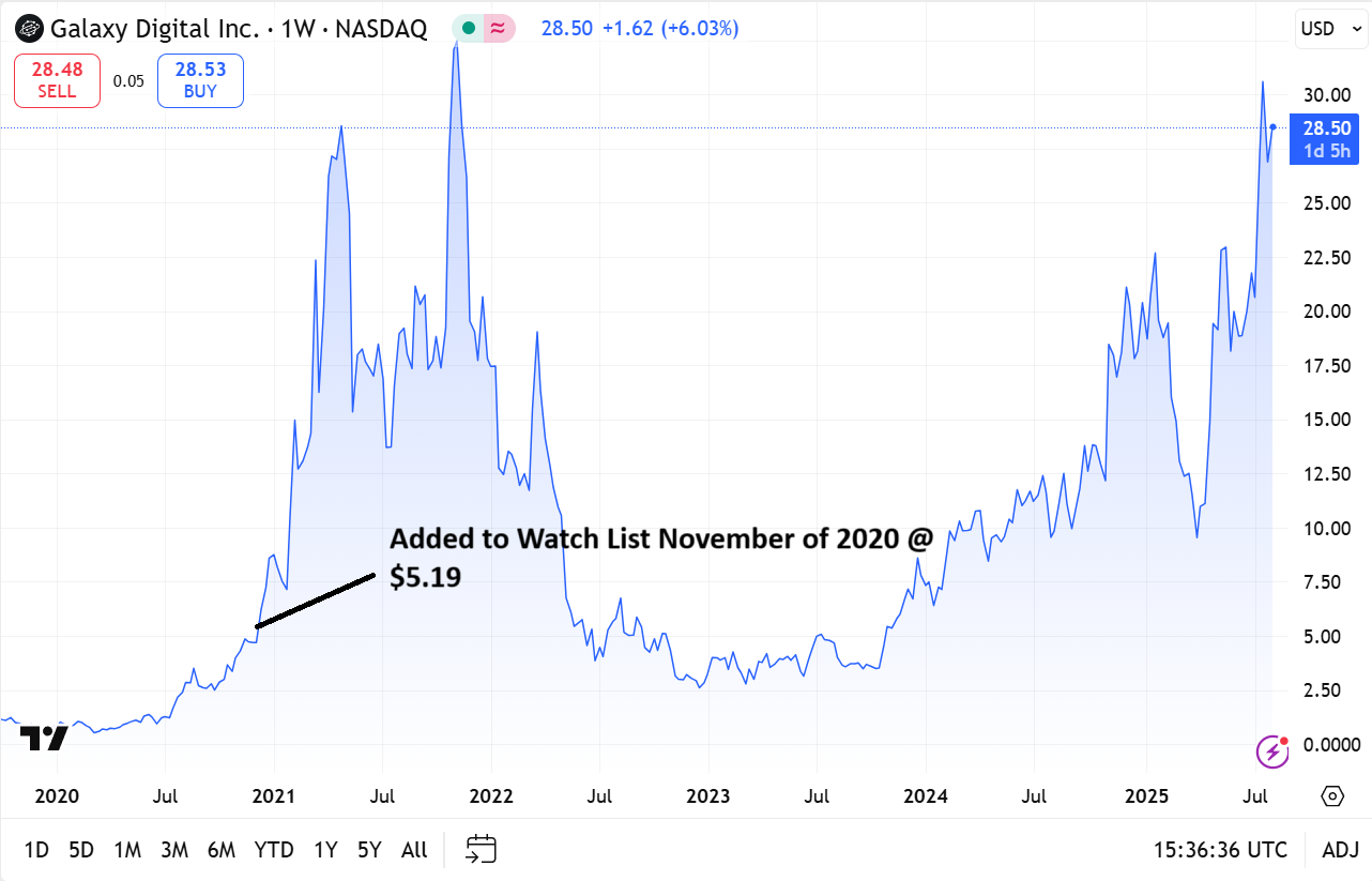 Adding Galaxy Digital (GLXY) $5.19 to Watch List.