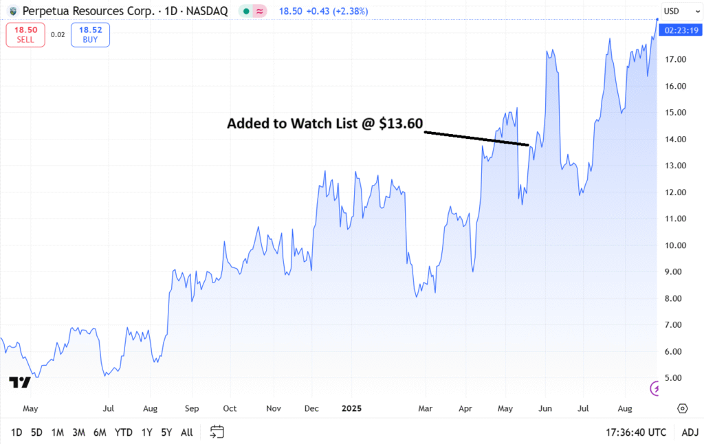May 20th, 2025: Adding Perpetua Resources (PPTA) $13.60 to Watchlist. Antimony Heaven.