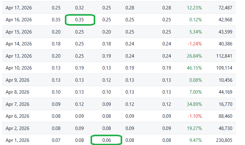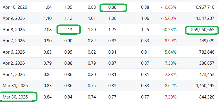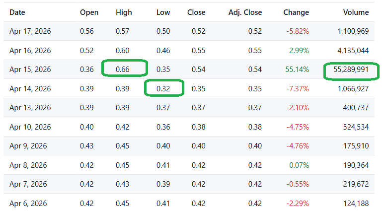 Odyssey Marine (OMEX) gained 169%, on a 259 million share day, from where we added it to 2026 Watch list. Society Pass (SOPA) gained 106%, from its recent low on a 55 million share day. And Vystar (VYST) gained 483%, from its recent low.