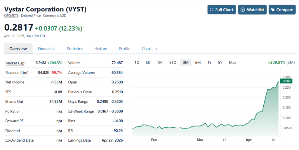 October 25, 2025: Incubator Stock Review Initiates Coverage on Vystar (VYST) $0.10
