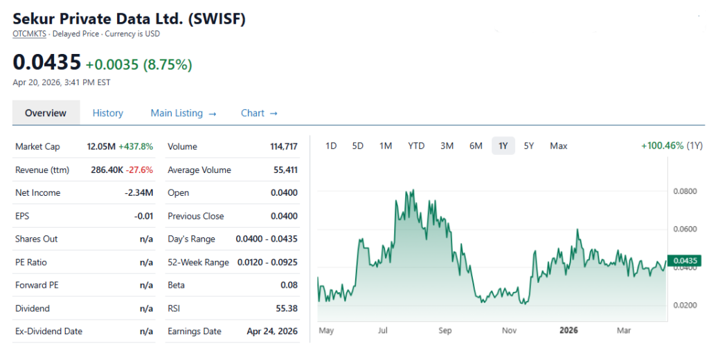 November 20th, 2025: Internet Stock Review Publishes Analysis Report on Sekur Private Data (SWISF)